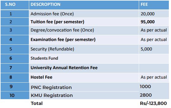 Note: Fee Structure may change as per Policy of the Institute(CNM)/KMU